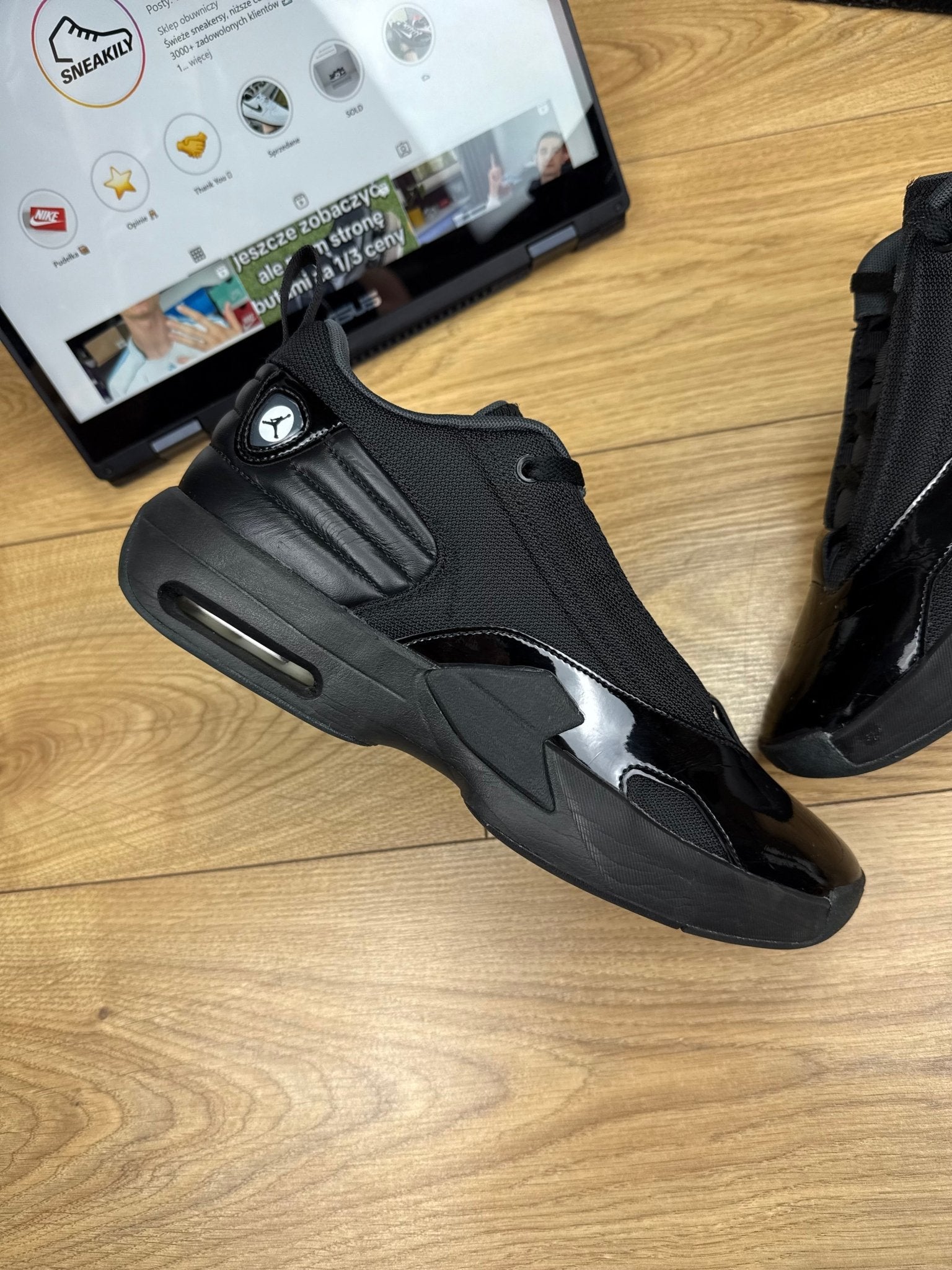 ✔️ Materiały: Cholewka: czarny mesh i syntetyki z lakierowanymi detalami; podeszwa: pianka EVA z widoczną poduszką Max Air w pięcie