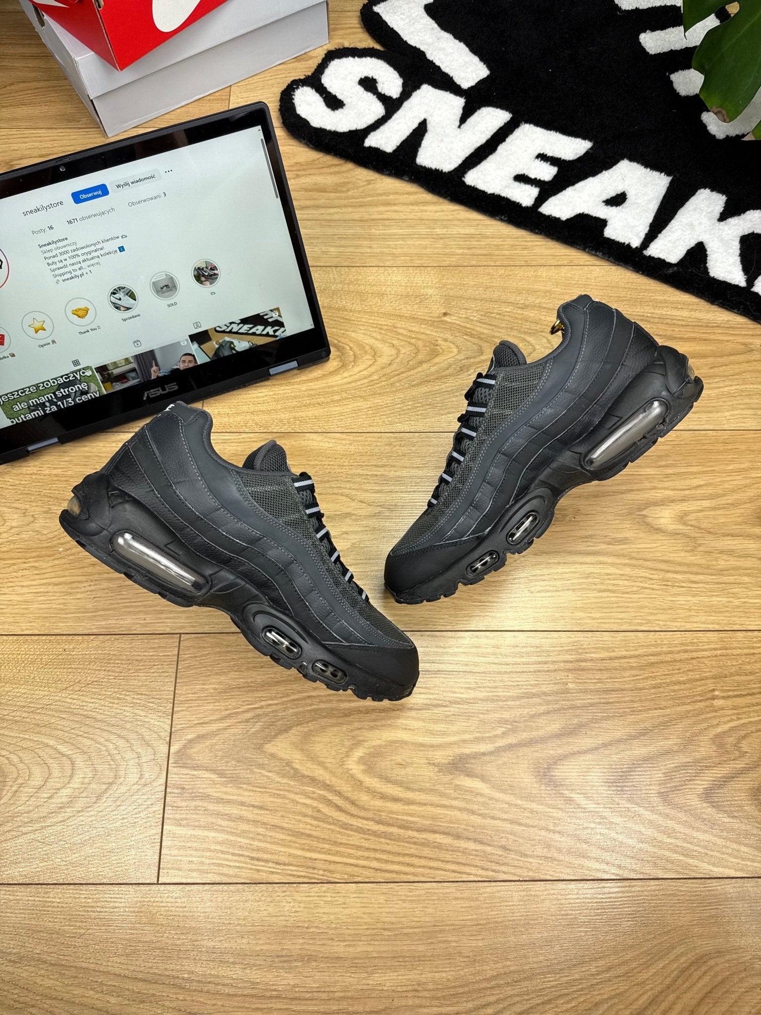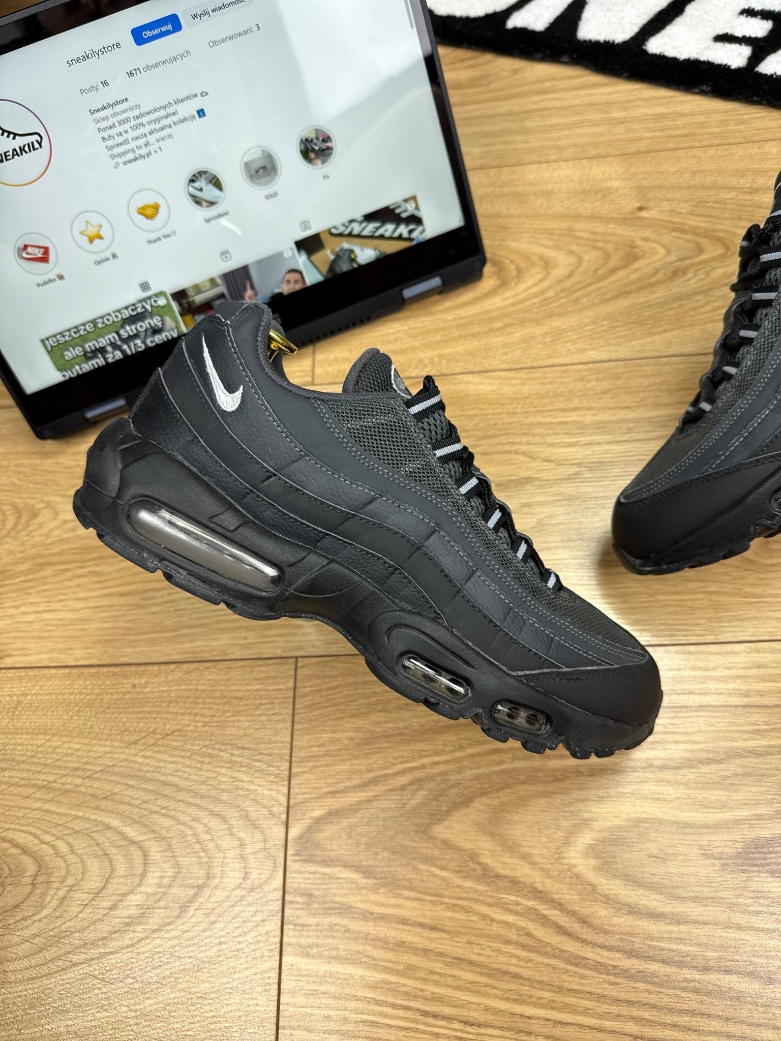 Nike Air Max 95 (HF0121-002) – Czarne z białym Swooshem – (EUR 43)