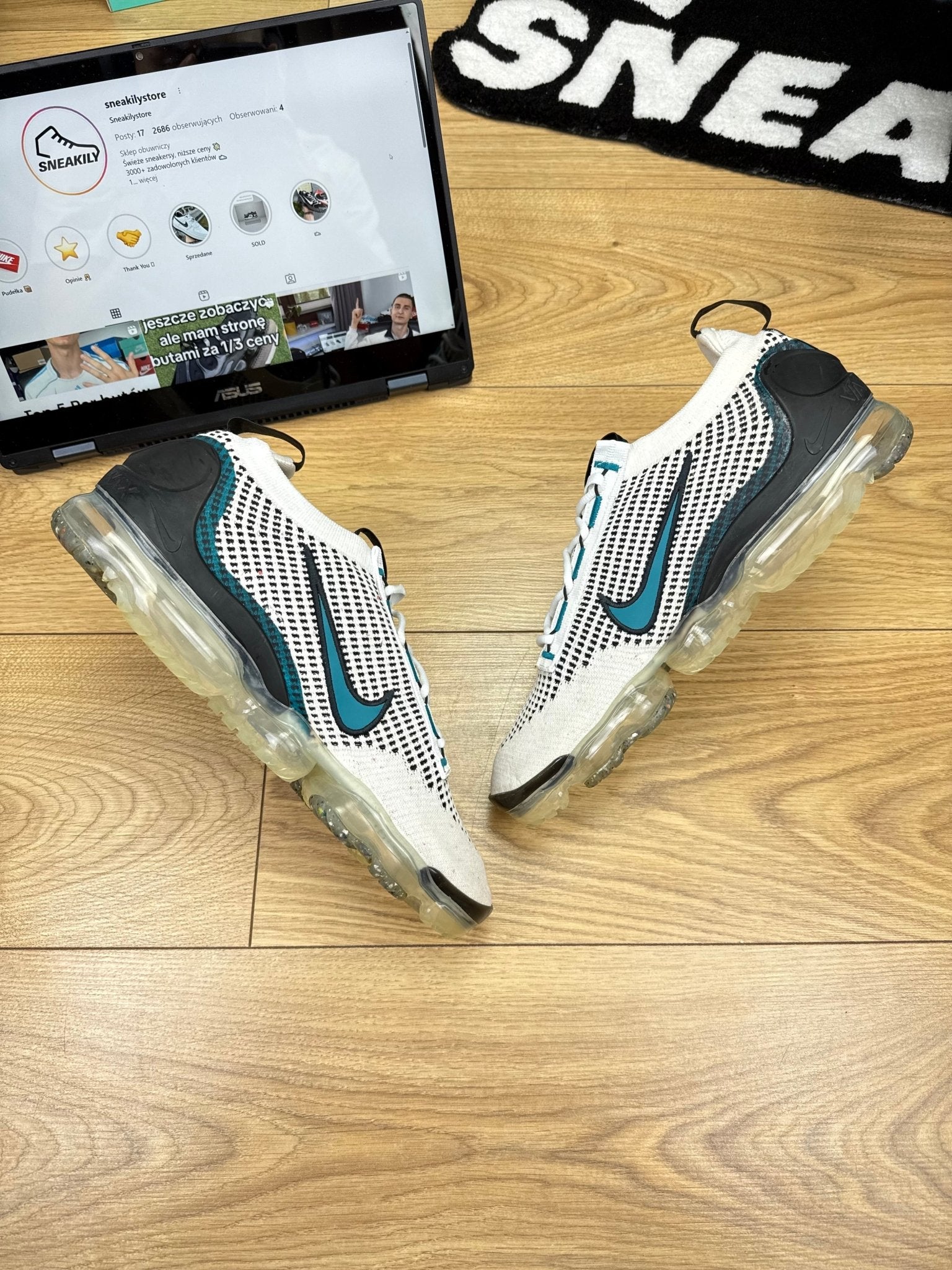 Nike VaporMax 2021 Flyknit „White / Bright Spruce” (kod DQ3974-100) to model mocno nastawiony na komfort i lekkość. Cholewka wykonana z Flyknitu zapewnia bardzo dobrą przewiewność, syntetyczne overlaye dodają wsparcia tam, gdzie jest potrzebne. Kolor główny to Biel, przełamany subtelnym akcentem Zieleń („Bright Spruce”), co czyni sneakersy bardziej interesującymi wizualnie. Podeszwa środkowa z pianki + pełna jednostka Air VaporMax zapewnia wygodę podczas chodzenia, a guma zewnętrzna trzyma w różnorodnych warunkach. Model idealny do casualowych stylizacji, szczególnie na wiosnę i lato.